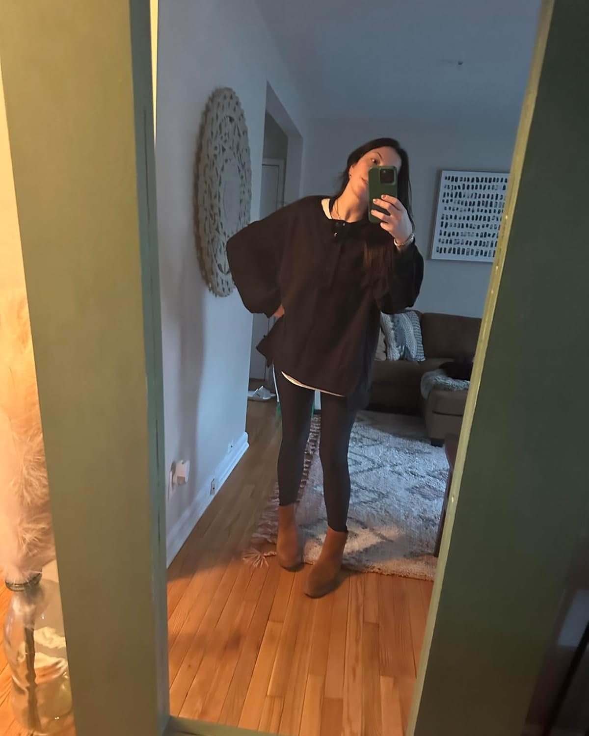 Our customers who own both say the quality is indistinguishable. Same premium fleece weight, same flattering oversized fit, same button details. The cut, the feel, the way it drapes – it's all there. The difference is about $60 and a tag you can't see when you're wearing it.