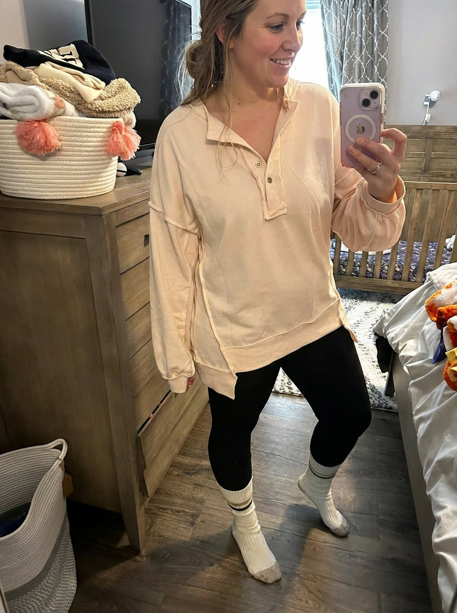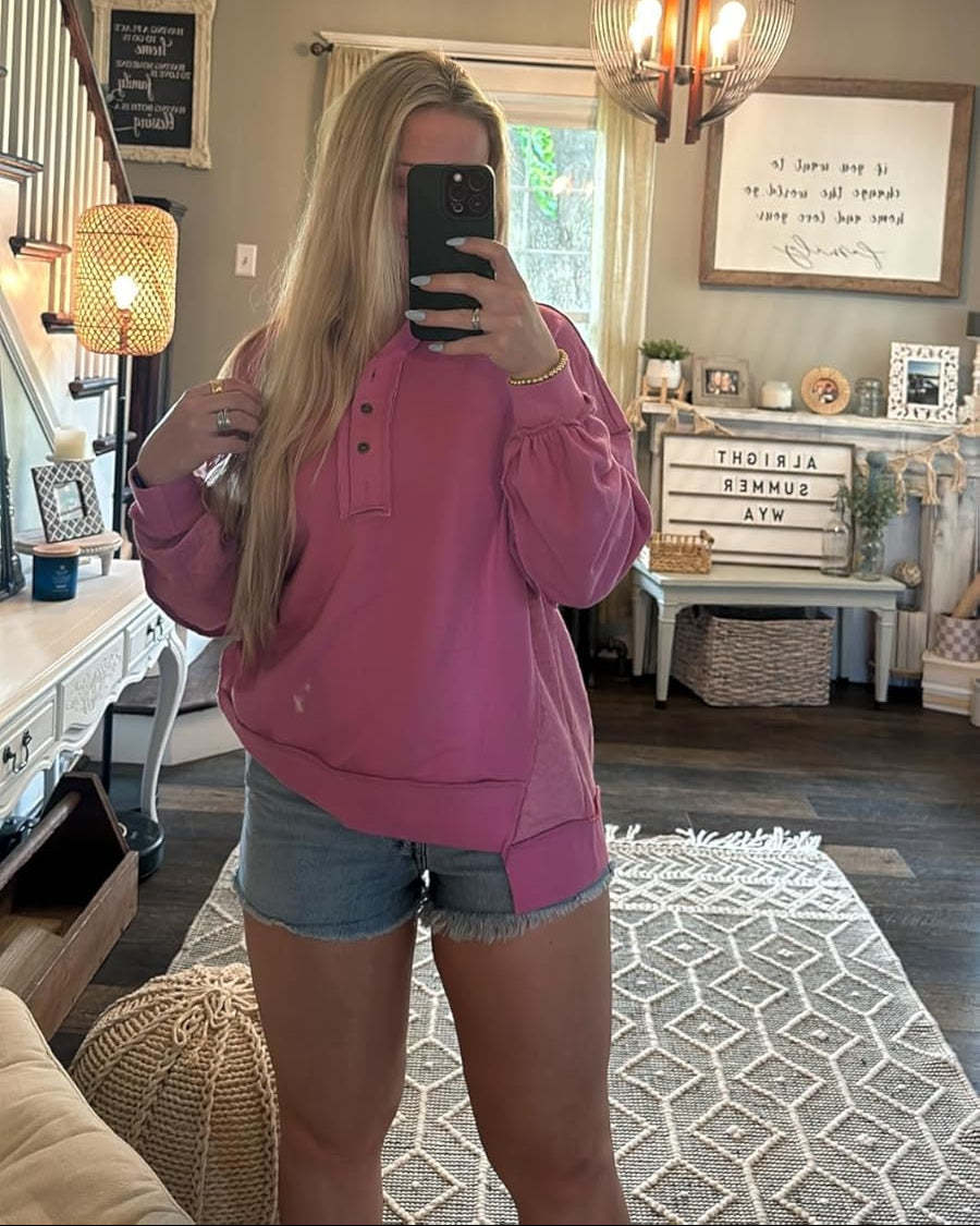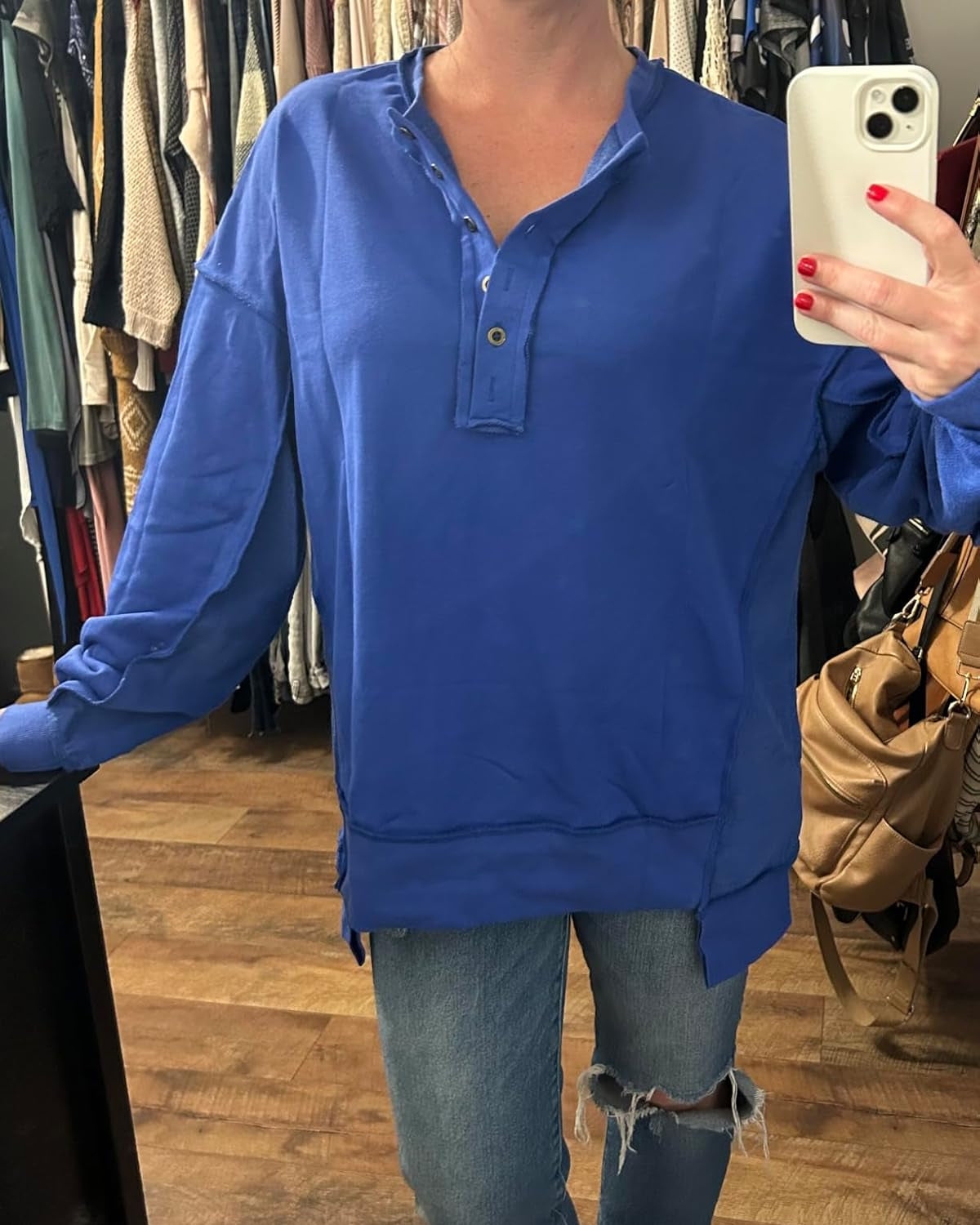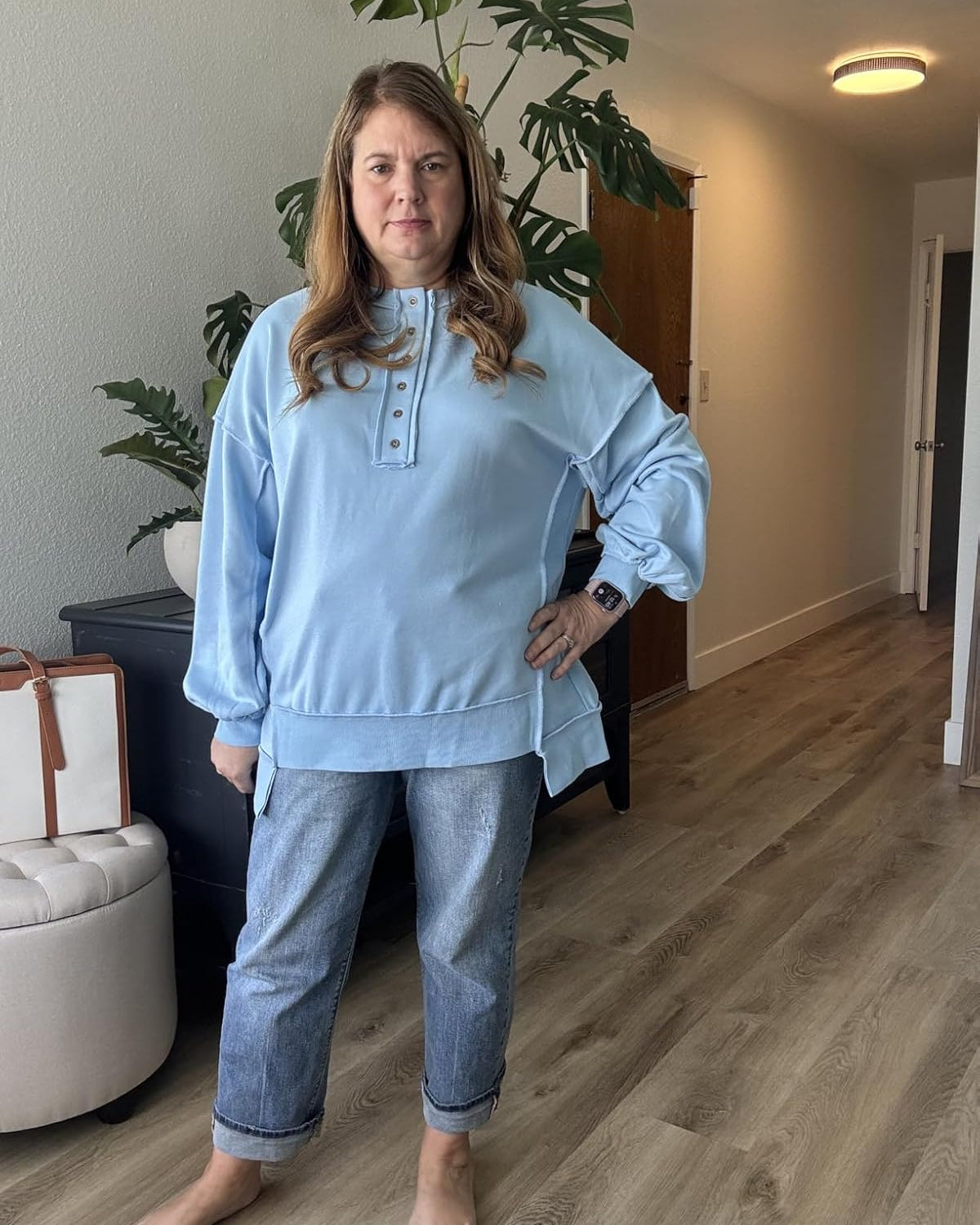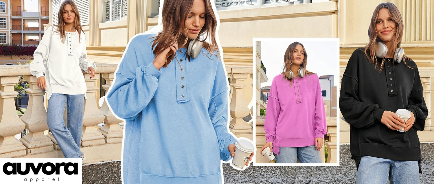 Experience the oversized fit that made the original famous – premium fleece, flattering silhouette, and the button detail that elevates everything. The auvora™ Henley Pullover delivers the $98 look and feel without the $98 price tag.